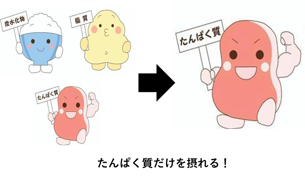 食事からは、主に肉や魚、卵などからタンパク質を摂ることができます。しかし、これらは同時に炭水化物や脂質を一緒に摂ることにも繋がってしまいます。